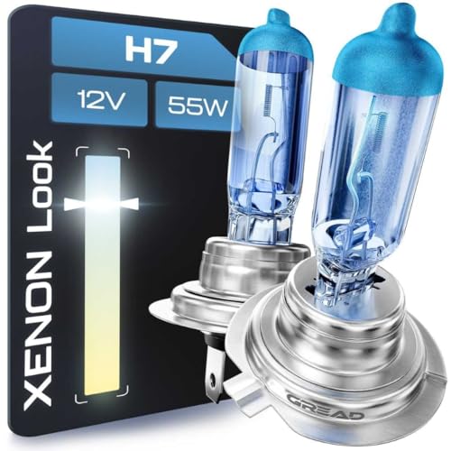 Gread H7 halogen bulbs, xenon-look, super white, 8500K 55W E-certification mark, perfect fit and long service life