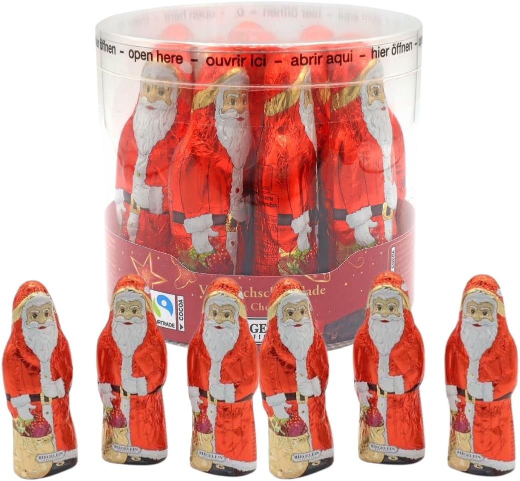 Riegelein Milk Chocolate Santa Pieces 25g x 11 Drum - Bulk Hollow Chocolate San