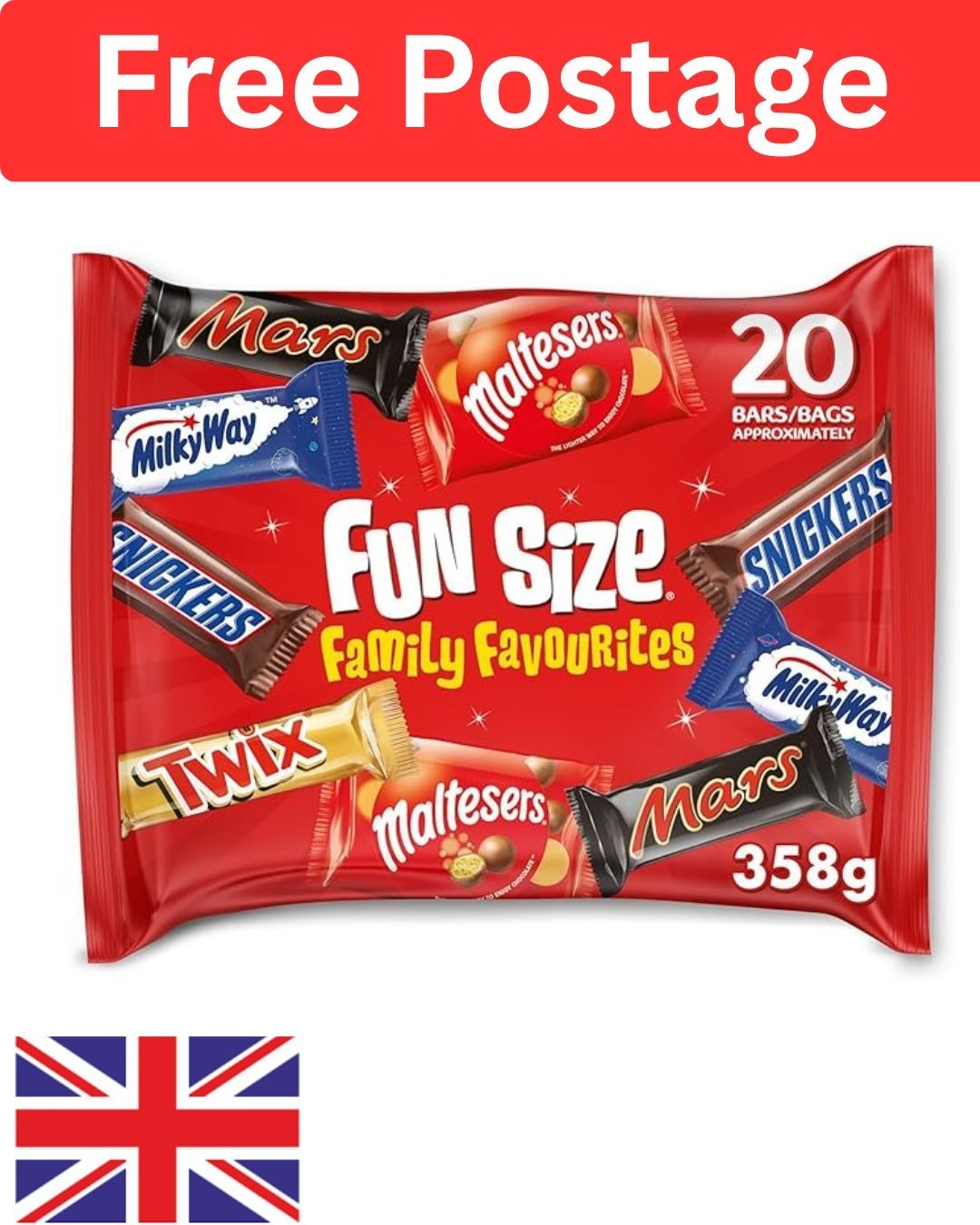 Mixed Bulk Chocolate Multipack 385g, 20 Fun Size Chocolate Bars & Bags, Mars,