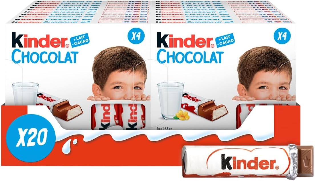 Kinder Chocolate Medium Bars, Bulk Chocolate Gift Box, Fine Milk Chocolate Bar with a Milky Filling, Pack of 20 x 126g