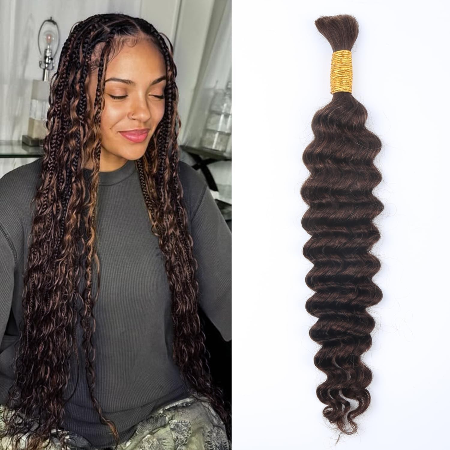 Deep Wave Bulk Human Hair Chocolate Brown Braiding Hair 16inch 1 Bundle 50g Bra