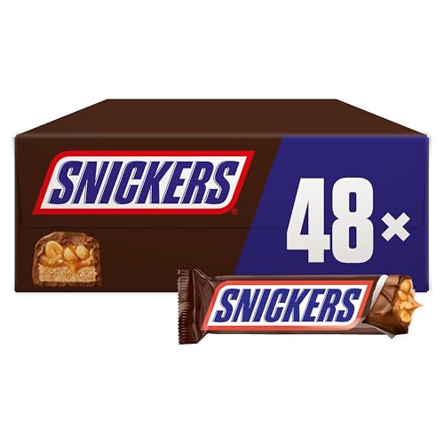 Snickers Chocolate Bars, Caramel, Peanuts & Milk Chocolate Bulk Box, 48 x 48g, Ideal for Gift, Snacks or Hamper