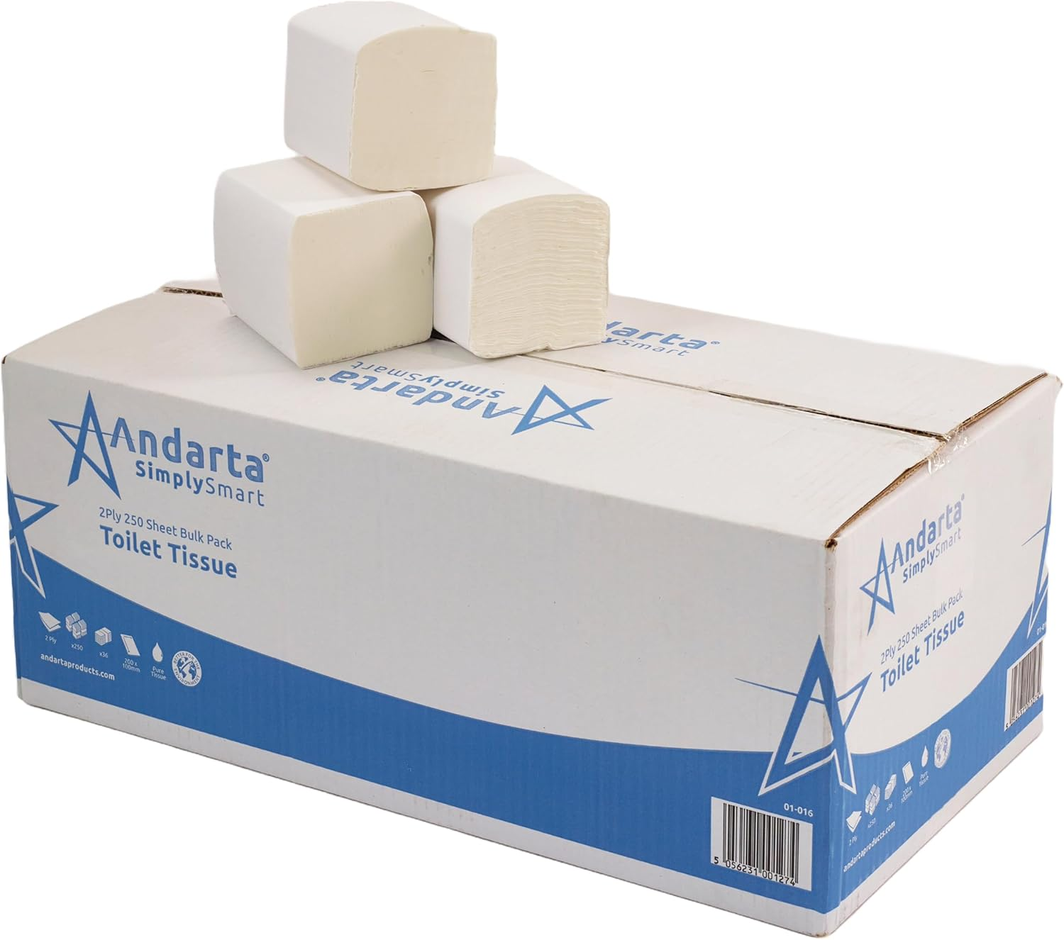 Andarta 2Ply Toilet Rolls 9000 Sheets Bulk Pack (36) Strong & Soft Tissue
