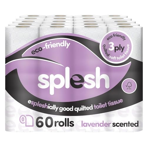 Splesh by Cusheen 3-ply Toilet Roll - Lavender Fragrance (60 Pack) Soft, Quilted Bulk Toilet Rolls, Toilet Tissue and Loo Rolls – Eco-Friendly Toilet Paper Sustainably Crafted in The UK