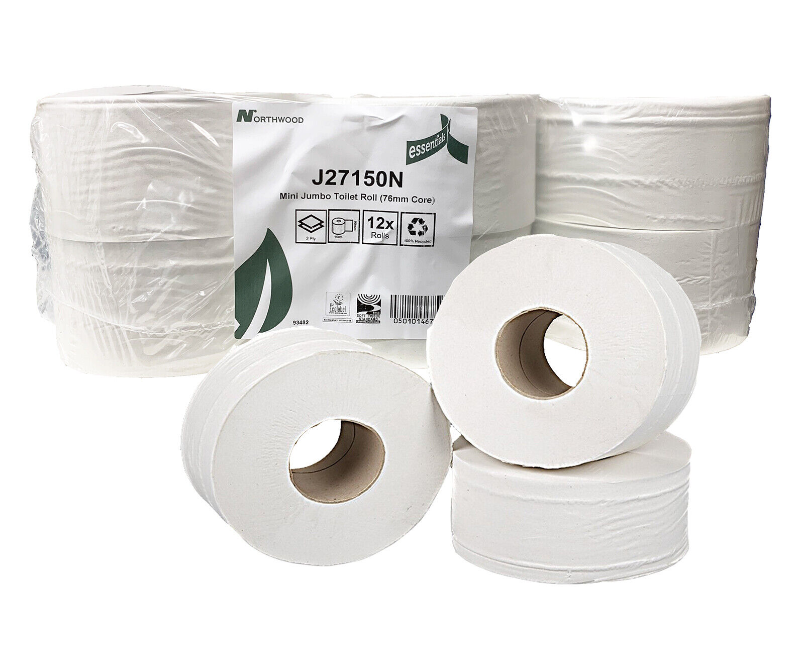 McKLords Commercial - Mini Jumbo Toilet Rolls - 150m, Pack of 12 Recycled 2 Ply Toilet Tissue, 60mm Core, Bulk Pack Ideal for Washrooms & Dispensers