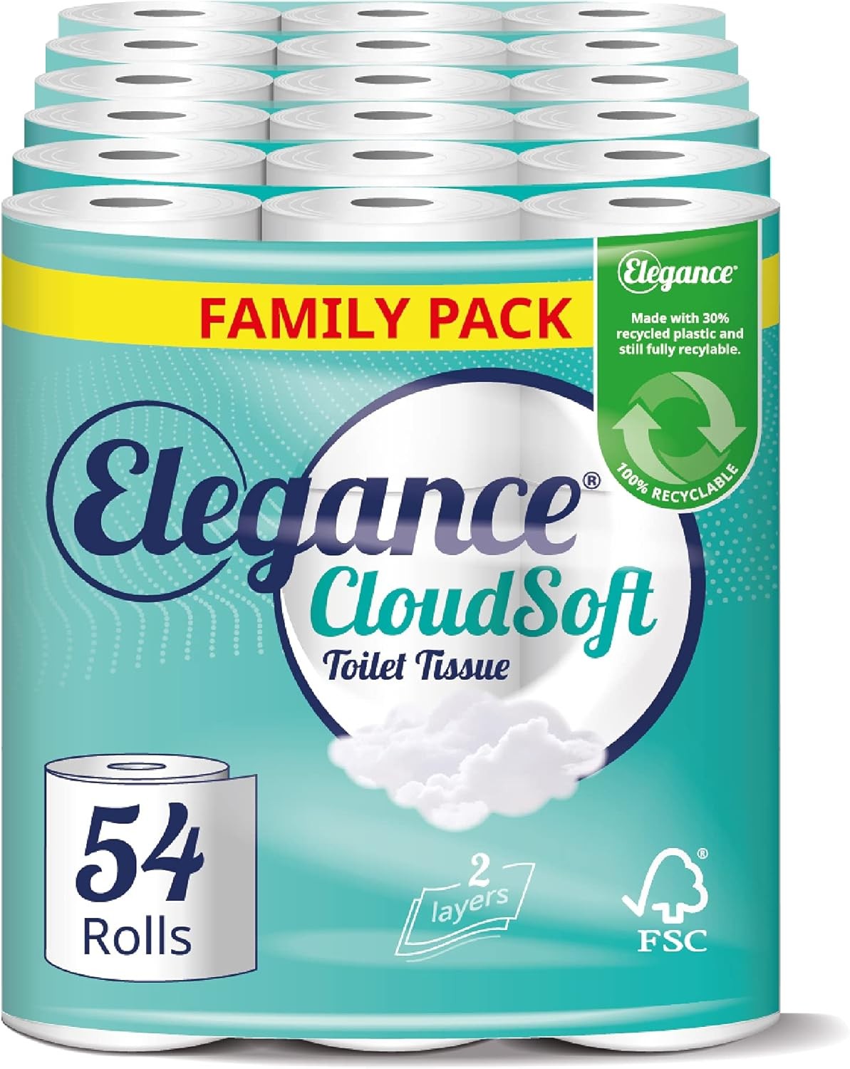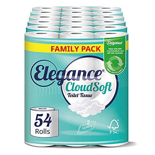 Elegance Cloud Soft Toilet Roll - Bulk Buy Pack of 54 Rolls - Soft, 2-Ply, Recycled, Eco-Friendly, UK Manufactured