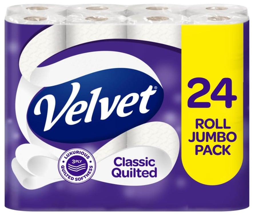 Velvet Classic Quilted Toilet Paper Bulk Buy, 3 ply Toilet Tissue Rolls