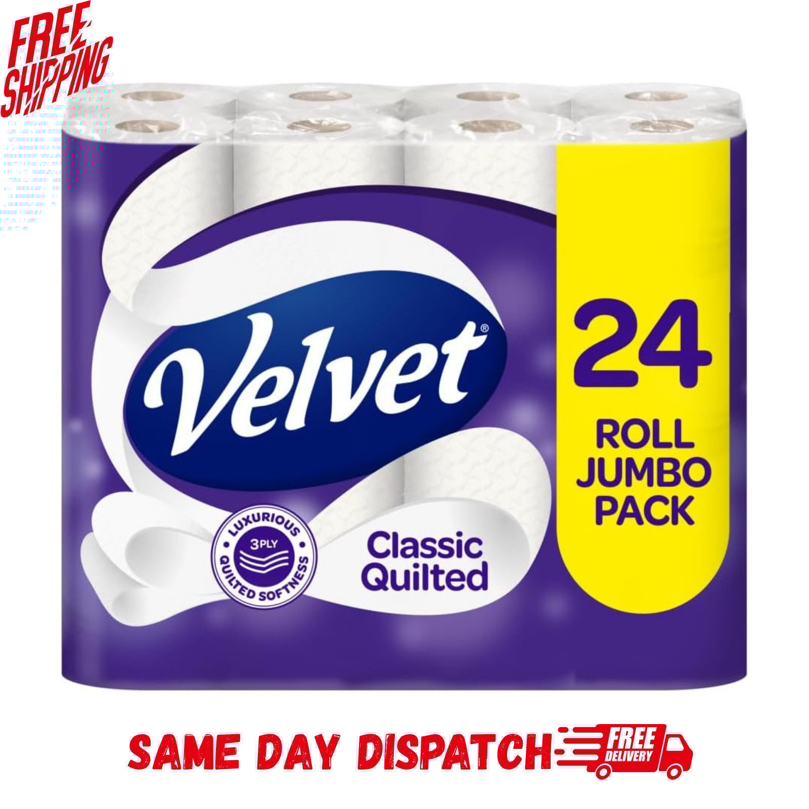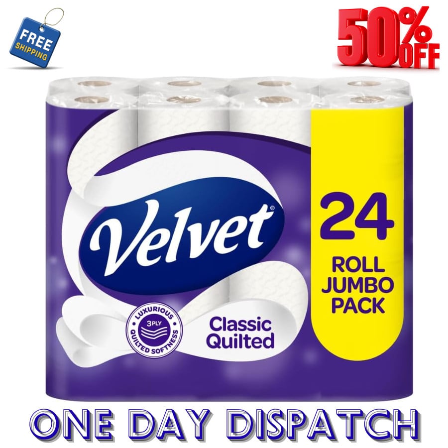 Velvet Classic Quilted Toilet Paper Bulk Buy, 3 ply Toilet Tissue Rolls-24 Count