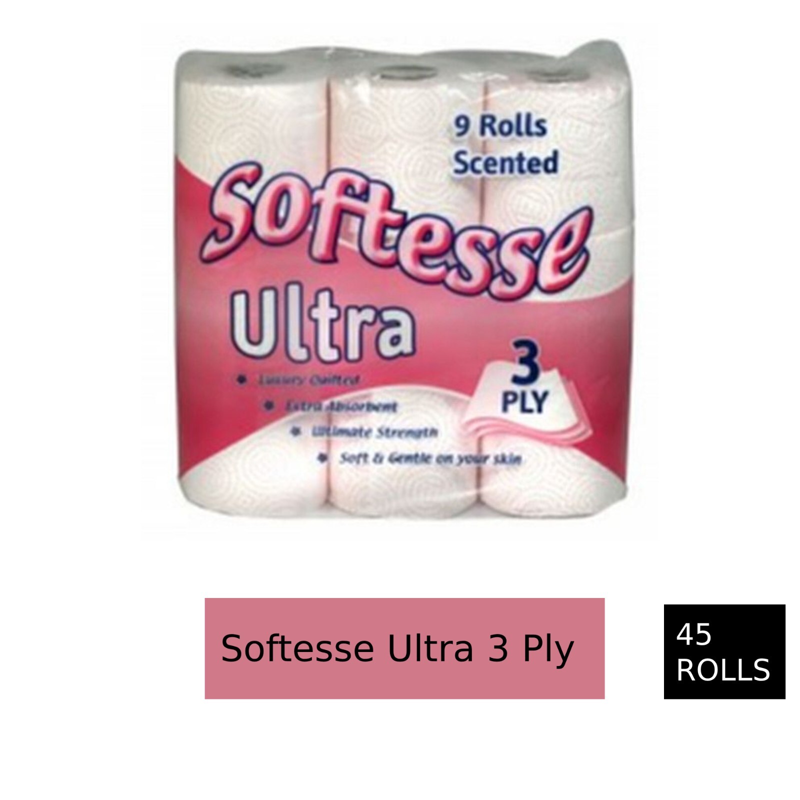 Softesse 3 Ply Toilet Paper – 45 Rolls White Quilted Tissue Peach Wrapped Bulk