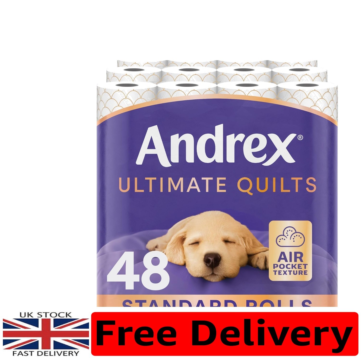 Andrex Ultimate Quilts Toilet Paper 48 Rolls, Air Pocket Technology for Soft, Thick Sheets - Bulk Pack of 48 Quilted Toilet Rolls, FSC Certified