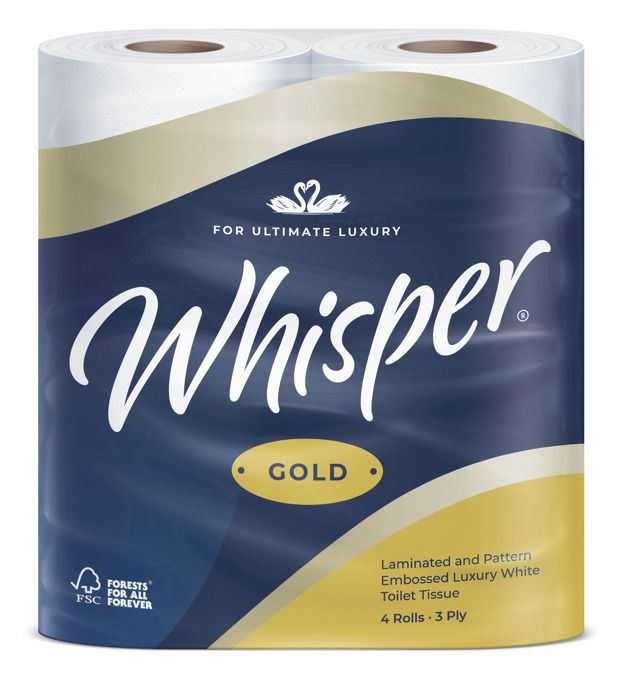 40 Rolls Whisper Gold Luxury 3Ply Toilet Roll Embossed Bulk buy Lightly Quilted