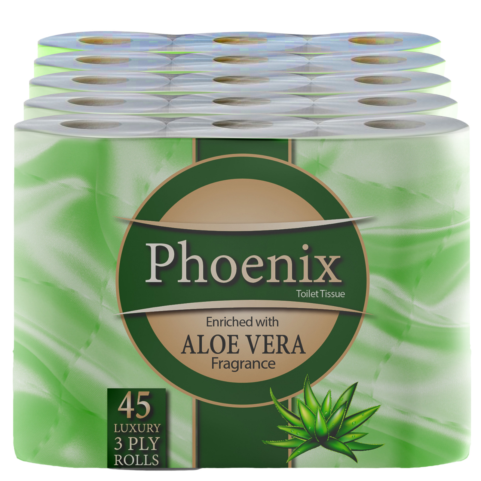 Phoenix Toilet Rolls – 45 Pack | 3 Ply Aloe Vera Scented Toilet Paper | Bulk Buy, Soft, Quilted, Sustainably Sourced, Eco- Friendly Luxury Bathroom Tissue