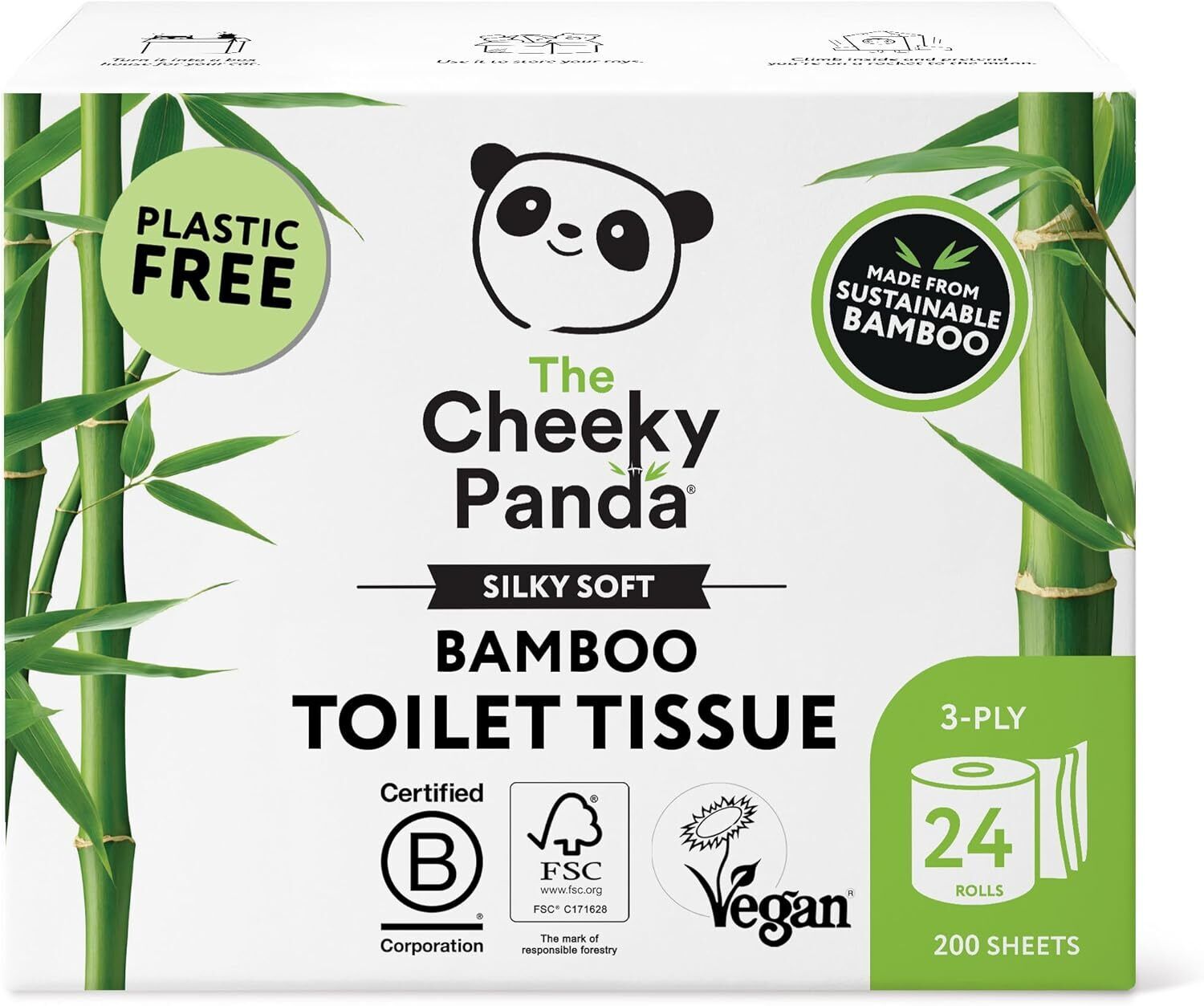THE CHEEKY PANDA BAMBOO TOILET ROLLS BULK BUY 24 ROLLS OF 3 PLY TOILET PAPER