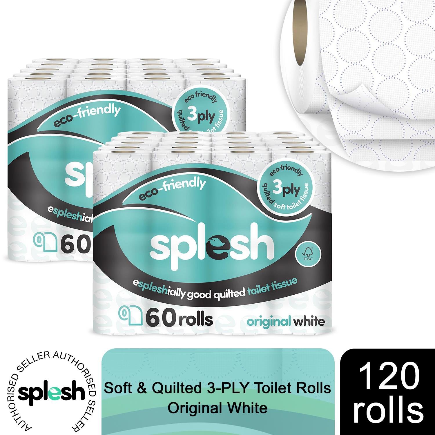 Splesh Toilet Roll Bulk Buy, Soft & Quilted Eco-Friendly 120 Rolls