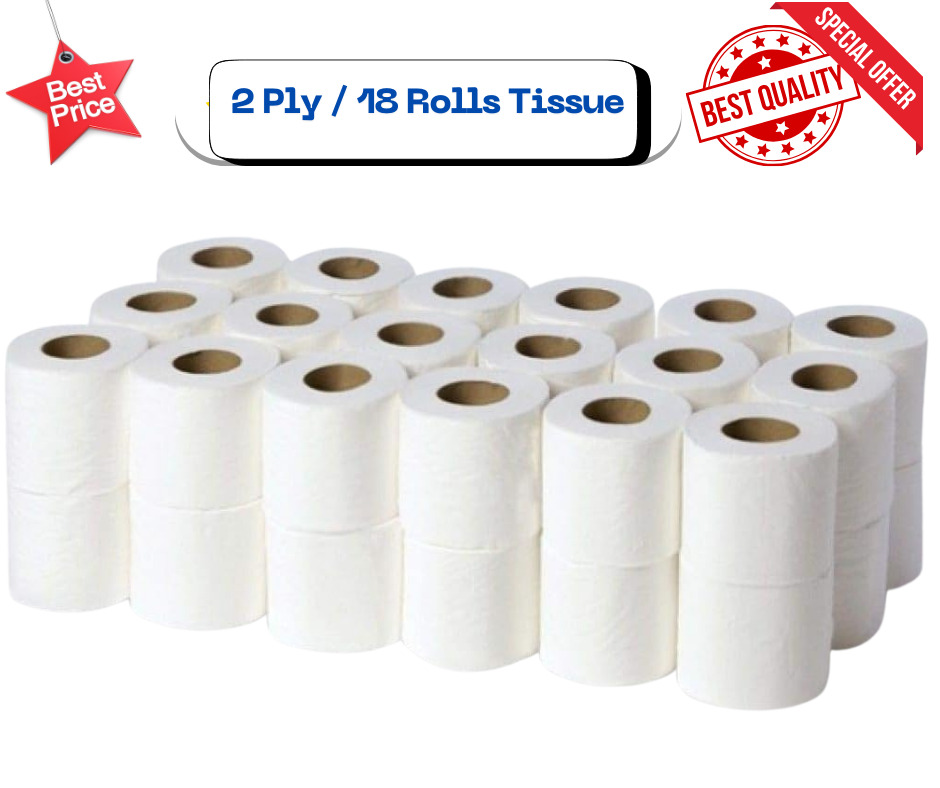 2Ply Toilet Roll Quilted Embossed Paper Luxury Tissue Rolls Bulk-Pack of 18