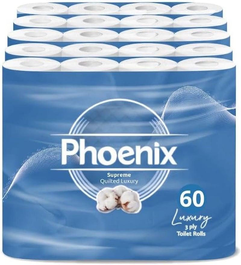 Phoenix Toilet Rolls – 60 Pack | 3 Ply Supreme Unscented Toilet Paper | Bulk Buy, Soft, Quilted, Sustainably Sourced, Eco- Friendly Luxury Bathroom Tissue
