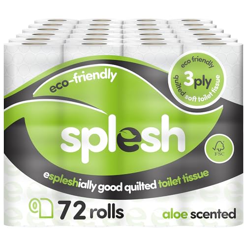 Splesh by Cusheen 3-ply Toilet Roll - Aloe Vera Fragrance (72 Pack) Soft, Quilted Bulk Toilet Rolls, Toilet Tissue and Loo Rolls – Eco-Friendly Toilet Paper Sustainably Crafted in The UK