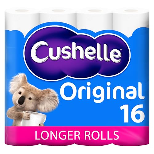 Cushelle Original Toilet Roll, 16 Longer Lasting Rolls, 16 Equals 24 Regular Rolls, White Bulk Toilet Paper