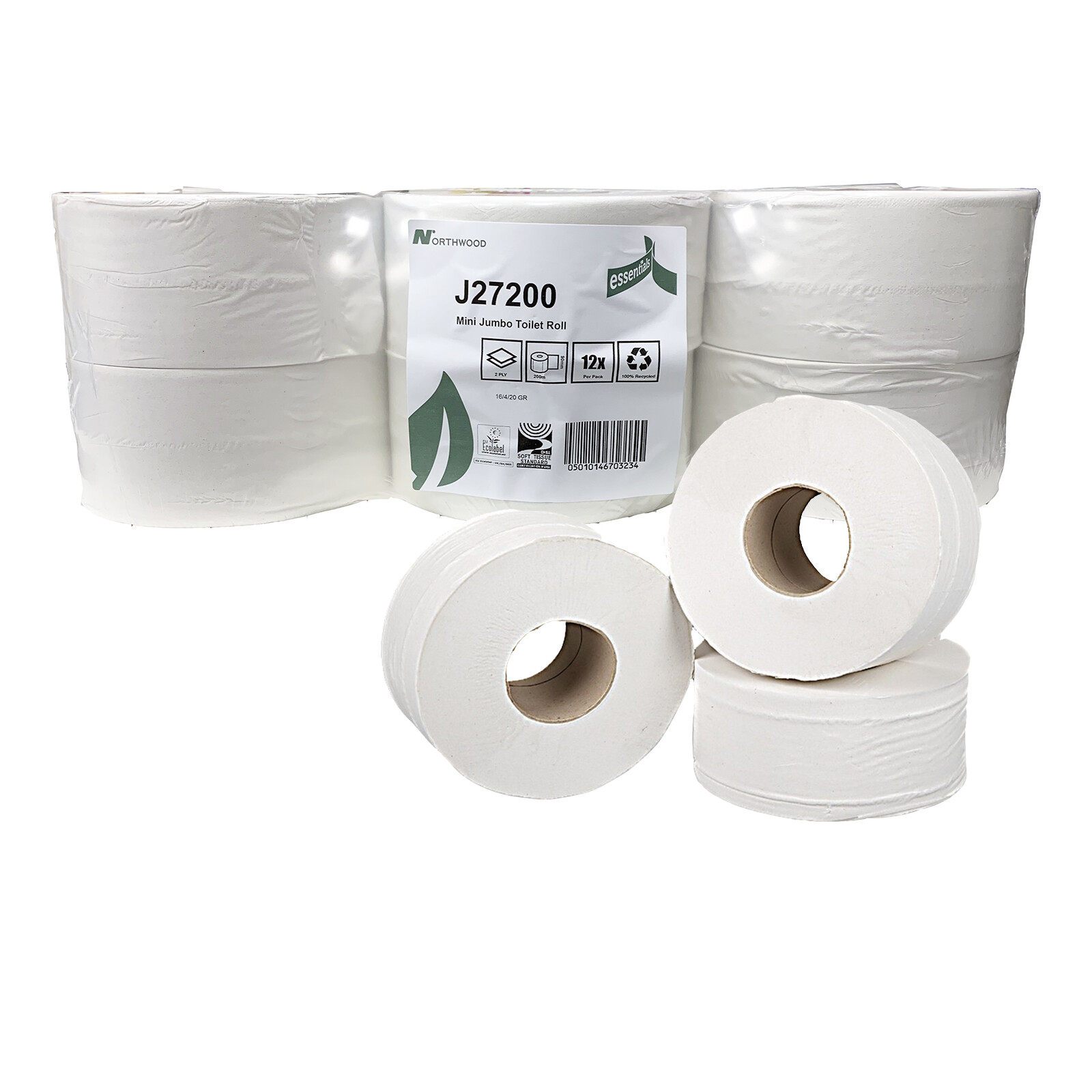 12 Mini Jumbo Toilet Rolls 2 ply 200m Bathroom Washroom Bulk Tissue Paper Sheets