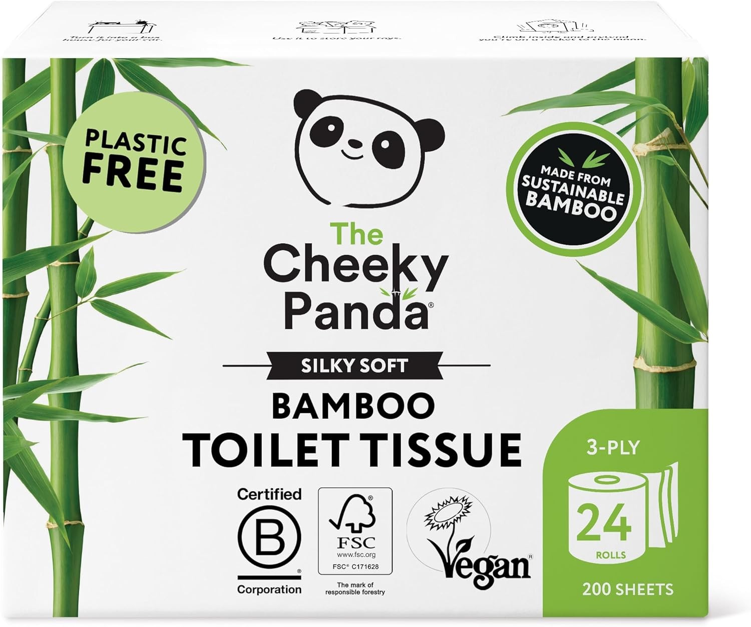 The Cheeky Panda Bamboo Toilet Rolls Bulk Buy – 24 Rolls of 3 Ply Toilet Paper | Plastic Free Packaging and Sustainable Tissue Paper | White