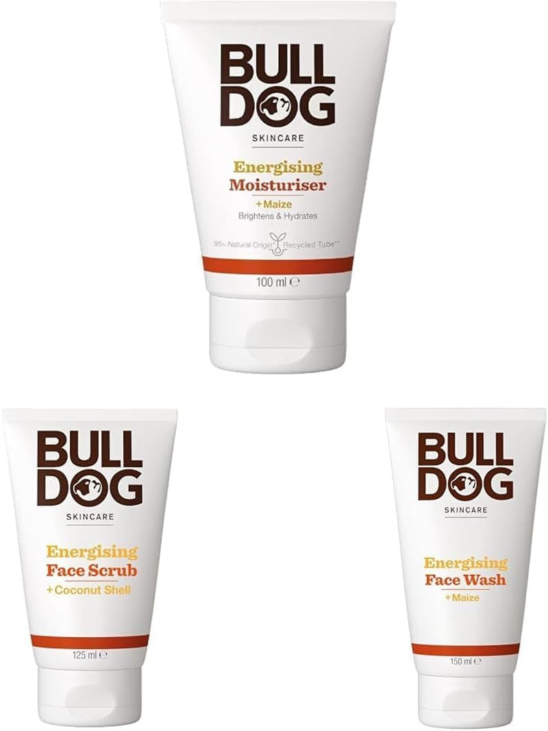 Bulldog Energising Moisturiser, Wash & Exfoliating Scrub Bundle