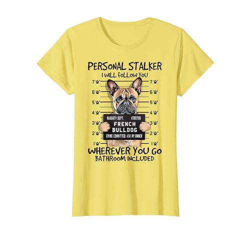 Funny Personal Stalker Fawn French Bulldog for Dog Owner T-Shirt, Women, Lemon Yellow, Small