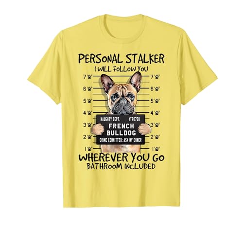 Funny Personal Stalker Fawn French Bulldog for Dog Owner T-Shirt, Men, Lemon Yellow, Small