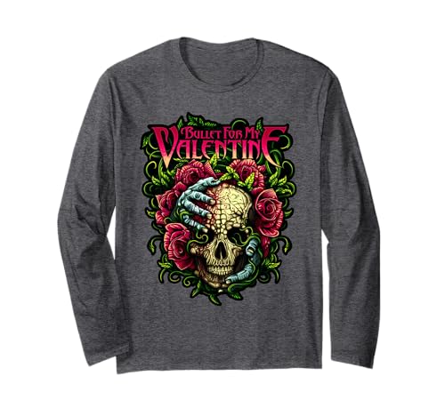 Funny Bullet My Valentine Skull Roses and Red Blood Horror Long Sleeve T-Shirt