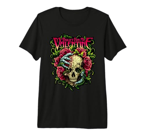 Funny Bullet My Valentine Horror with Skull, Roses and Red Blood Premium T-Shirt