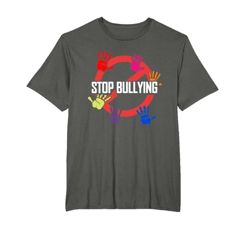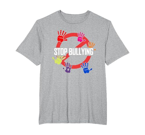BIBOKAOKE Girls T-Shirt with Print - Short Sleeve Crew Neck Shirt with "Stop Bullying" Motif and Handprint | Casual Top for School and Everyday Use
