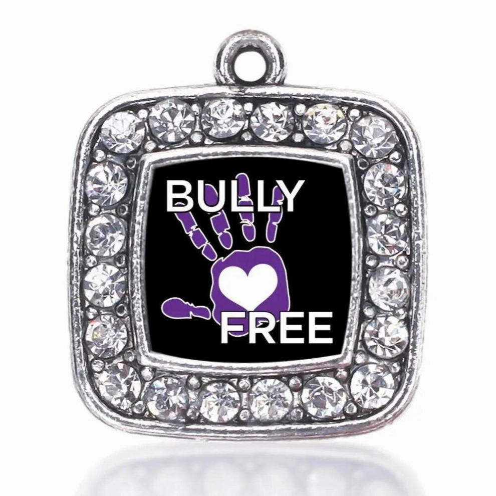BULLYING SUPPORT AND AWARENESS SQUARE CHARM ANTIQUE SILVER PLATED CRYSTAL JEWELRY