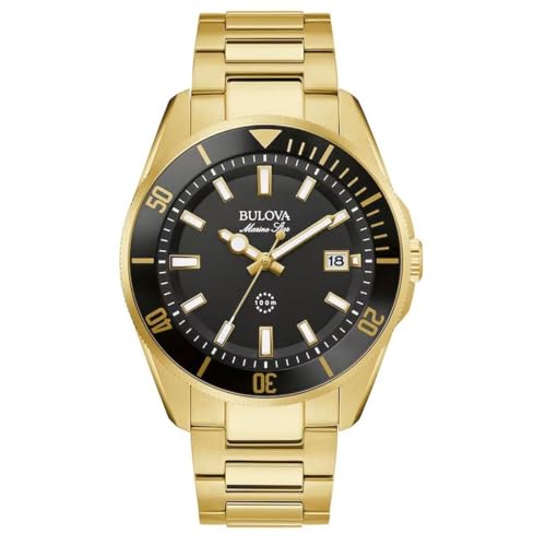 Bulova Men's Designer Chronograph Watch Rubber Strap - Water Resistant Black Gold Marine Star 98B278