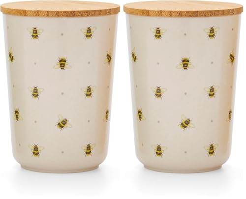 Cooksmart British Designed Kitchen Canisters With Bamboo Lid | Kitchen Storage Canisters For Modern Kitchens | Tea Coffee and Sugar Canisters Set For All Types Of Kitchens (Bumble Bees - 2087)