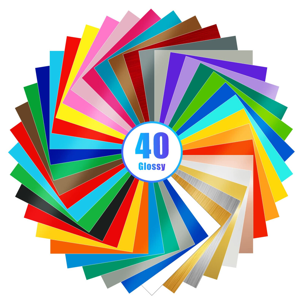 Lya Vinyl 40 Pack Glossy Permanent Vinyl Bundle Permanent Adhesive Vinyl for Cricut & Silhouette Cameo 4, Outdoor Cricut Vinyl for Party Decoration,