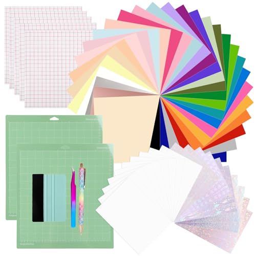 VINYL FROG 60PCS Accessories Bundle for Cricut Maker and All Explore Air, Ultimate Tools with Permanent Adhesive Vinyl, Printable Vinyl Sticker Paper, Cutting Mat, Weeding Tools, Scrape