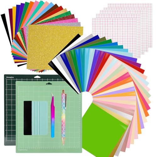 VINYL FROG 60PCS Accessories Bundle for Cricut Maker and All Explore Air, Ultimate Tools with Permanent Adhesive Vinyl, HTV Vinyl, Cutting Mat, Weeding Tools, Scrape