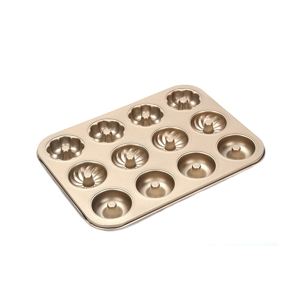 Donut Mold Cake Pan, Non-Stick Donut Pan for Baking 12-Cavity Carbon Steel Doughnut Bakeware, Oven Baking Fluted Tube Bundt Pan Mini for Family Dinner