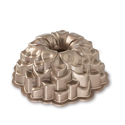 Nordic Ware Bundt Charms Pan, 3D Cast Aluminium Bundt Tin, Bundt Cake Tin with Geometric Pattern, Cake Mould Colour: Gold