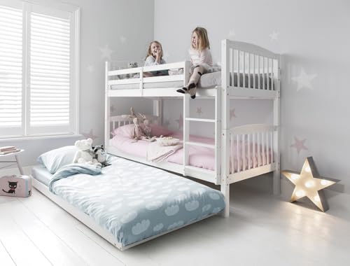 Flair Furnishings Triple Bunk Beds for Kids, Trundle Bed, Heavy Duty and Sturdy, Cosy, Stylish, Space-Saving Design (White)