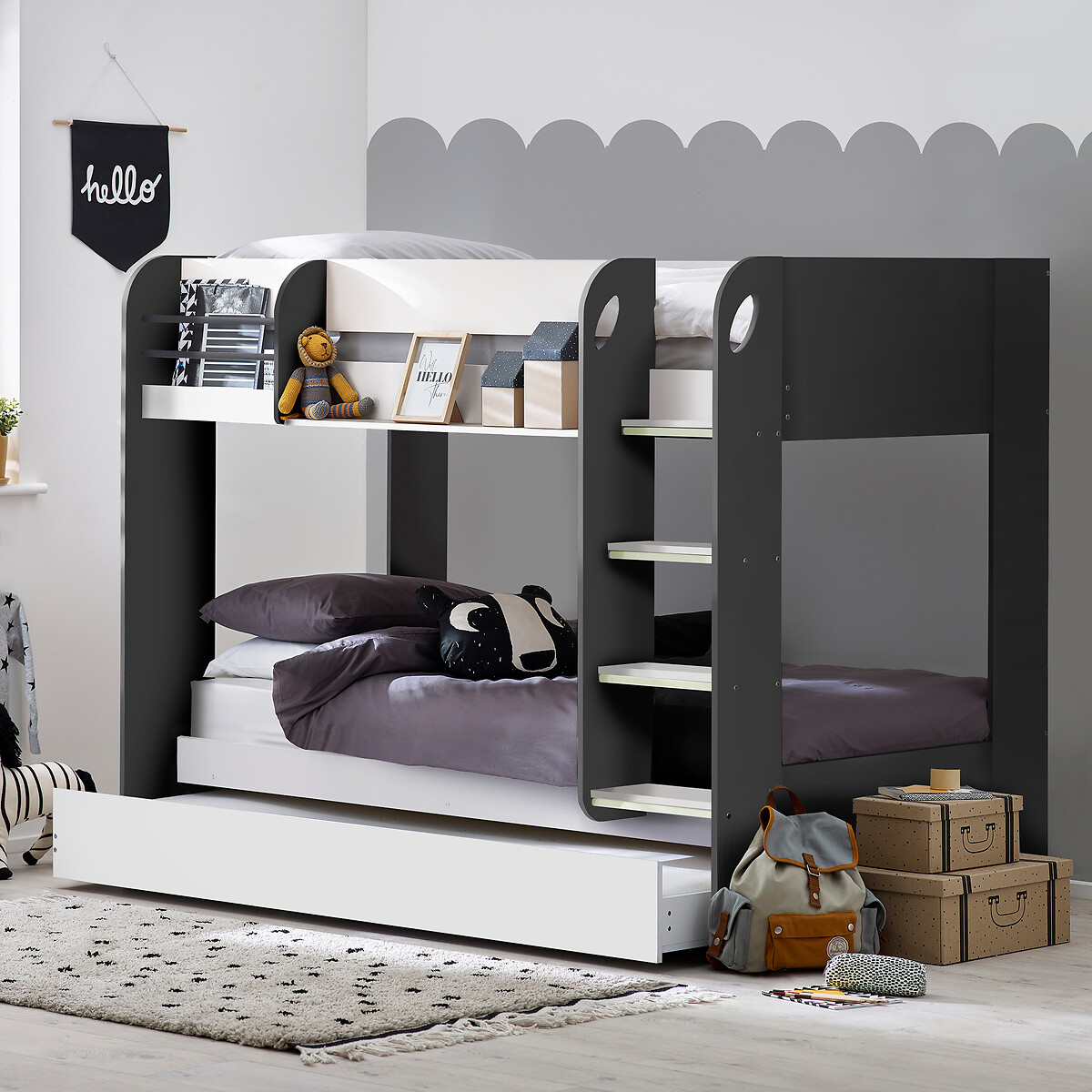 Premium Charcoal and White Bunk Bed Including Pull Out Trundle