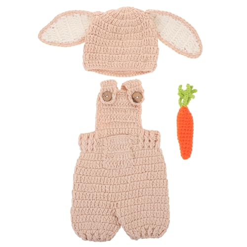 STAHAD Rabbit Photo-shoot Costume Easter Bunny Photo Costume Set Newborn Breathable Skin-friendly Woolen Thread Outfit with Hat Shorts and Carrot for First Easter Shower