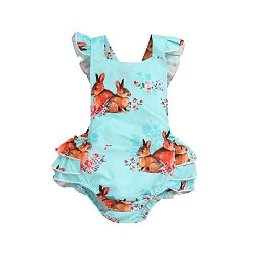 Easter Bunny Outfit Newborn Infant Baby Girls Easter Sleeveless Cartoon Rabbit Printed Romper Newborn Bodysuits Clothes Baby 6 Months Girl Light Blue