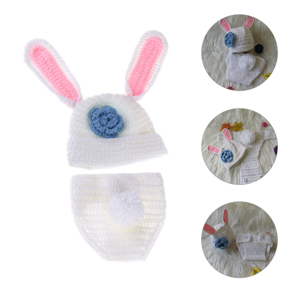1Set Soft Wool Baby Bunny Outfit Newborn Photography Props Crochet Set