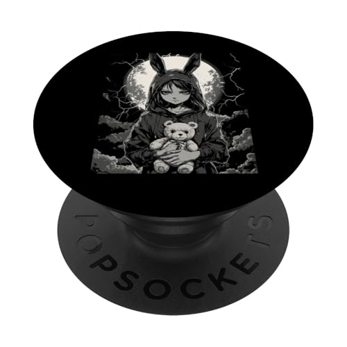 Anime Girl Bunny Teddy Bear Goth Women Gothic Anime Bunny PopSockets Adhesive PopGrip