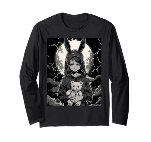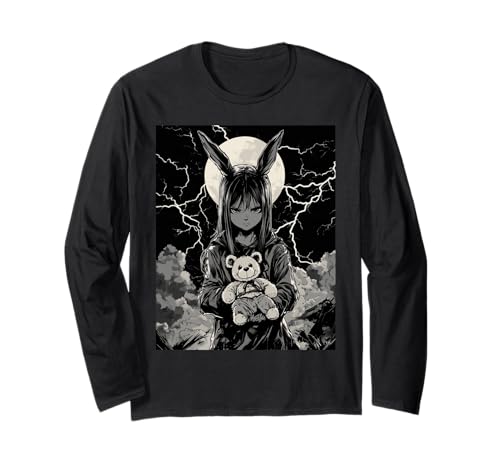 Anime Girl Bunny Teddy Bear Goth Women Gothic Anime Bunny Long Sleeve T-Shirt