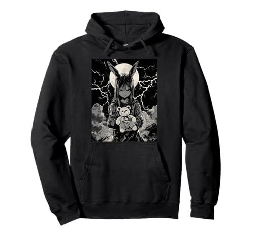 Anime Girl Bunny Teddy Bear Goth Women Gothic Anime Bunny Pullover Hoodie