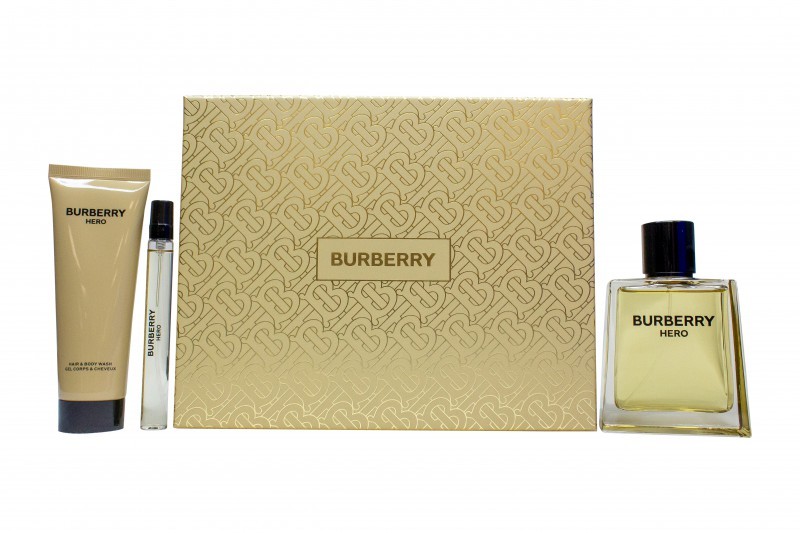 Burberry Hero Gift Set 100ml Eau de Toilette EDT + 75ml Body Wash + 10ml EDT