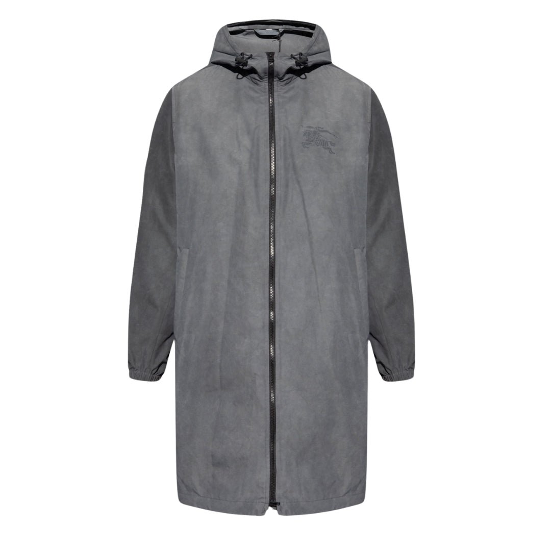 Burberry Mens Logo Printed Grey Zipped Hooded Coat Cotton - Size X-Large