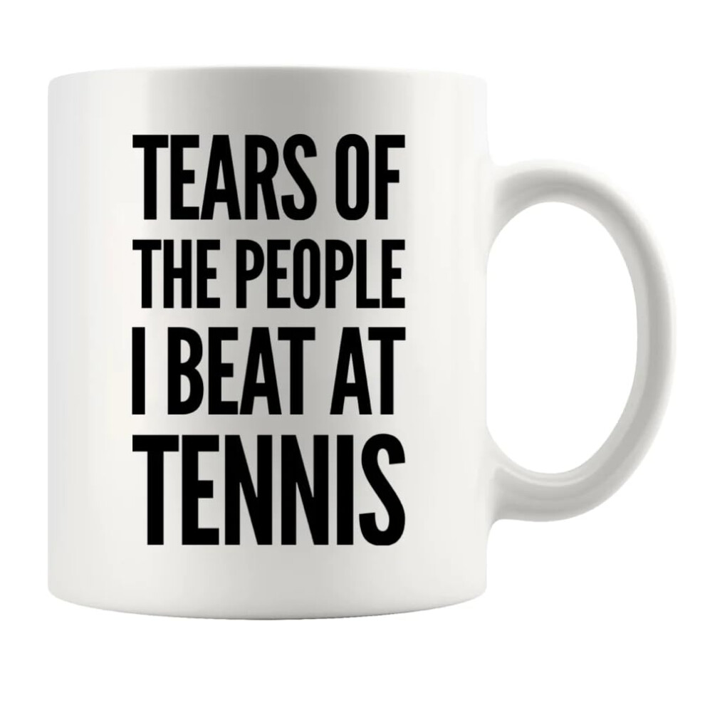 Panvola Tears of the People I Beat at Tennis Sports Tennis Gifts For Men Women Coach Player Novelty Drinkware Coffee Mug Ceramic Cup (11 oz, White)