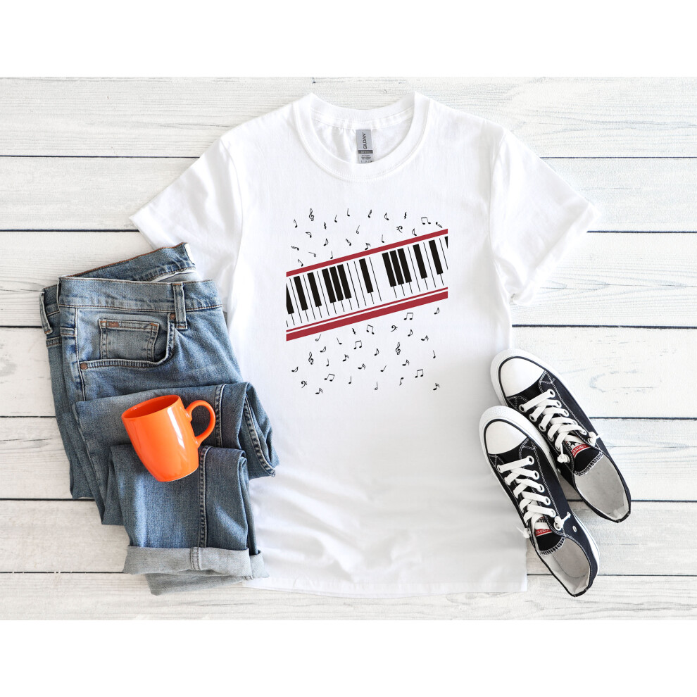 (XXXX-Large, White) English The Beat It Piano Pop Music Men Women Unisex Top T Shirt